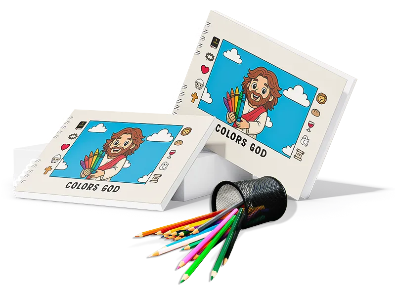 COLORS GOD é um livro de colorir cristão com 50 ilustrações exclusivas de cenas bíblicas, criadas para fortalecer sua fé de forma leve, visual e criativa. Cada página é uma oportunidade de mergulhar em histórias marcantes da Palavra de Deus, enquanto você colore e reflete sobre princípios eternos.